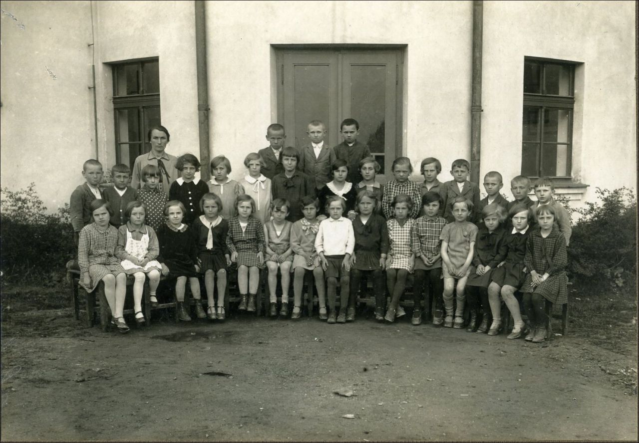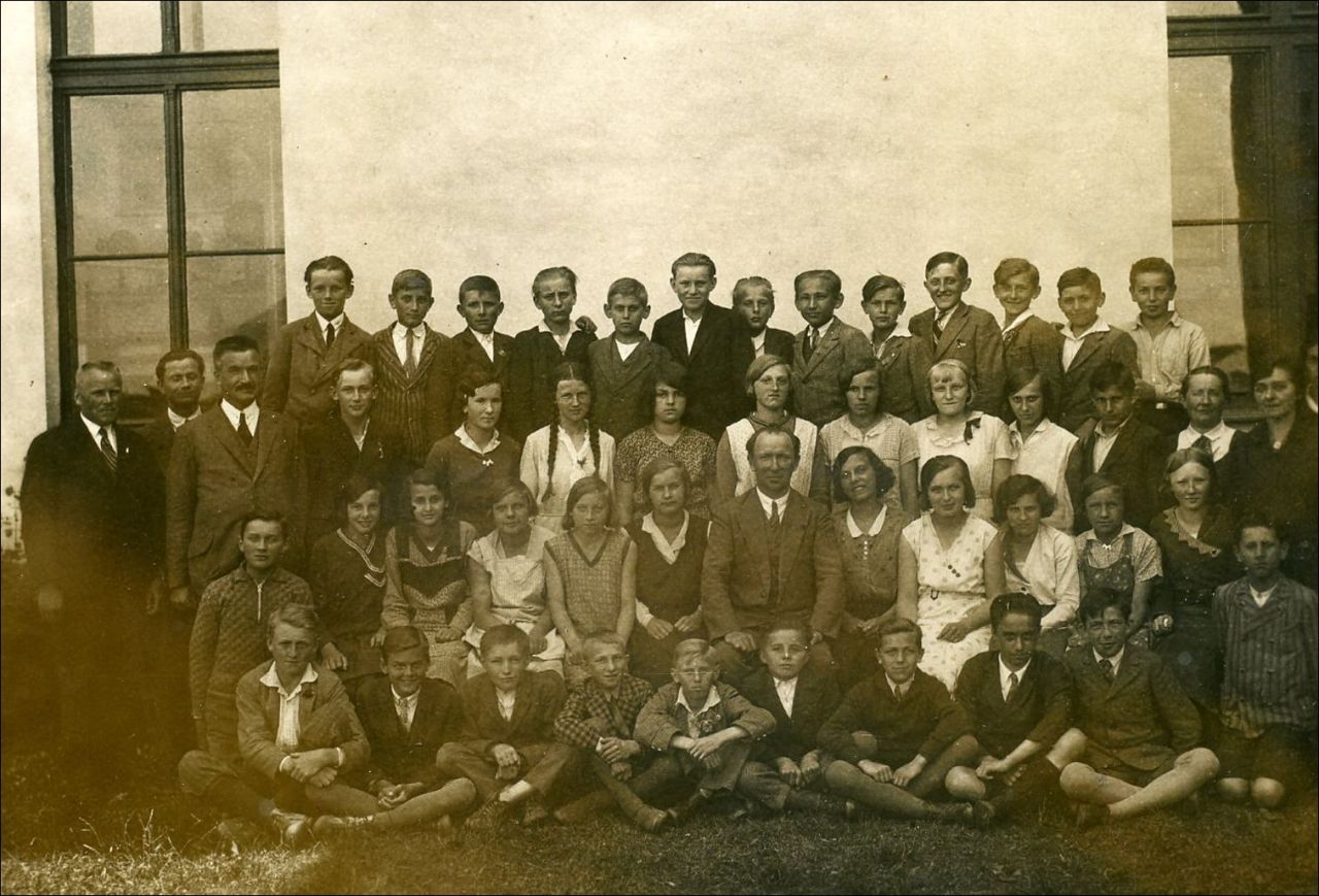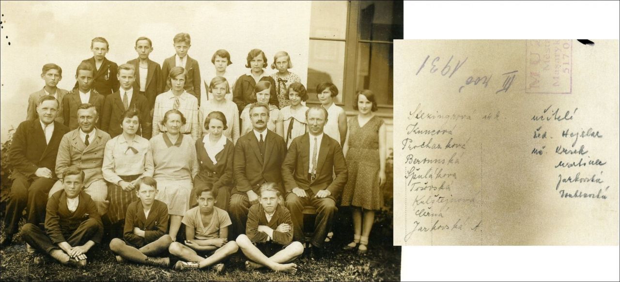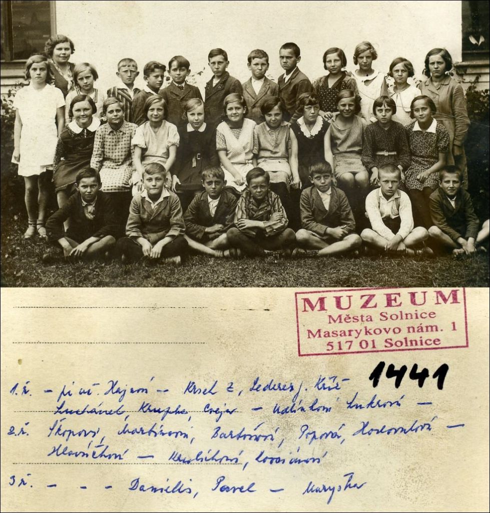 III. ročník, ředitel Hejzlar, učitelé: Martinec, Kkrsek, Tišler, Jarkovská, Doubravská