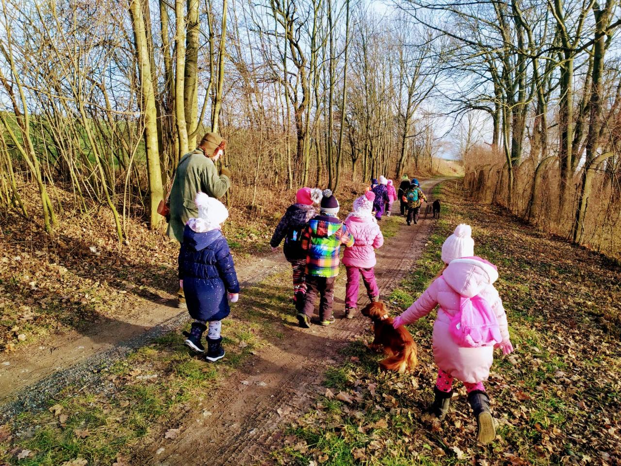 Knihovna Solnice pozvala za krásného slunečného počasí děti z mateřské školy na procházku do Bironova háje v Kvasinách ke krmelci za účelem zimního přikrmování lesní zvěře.