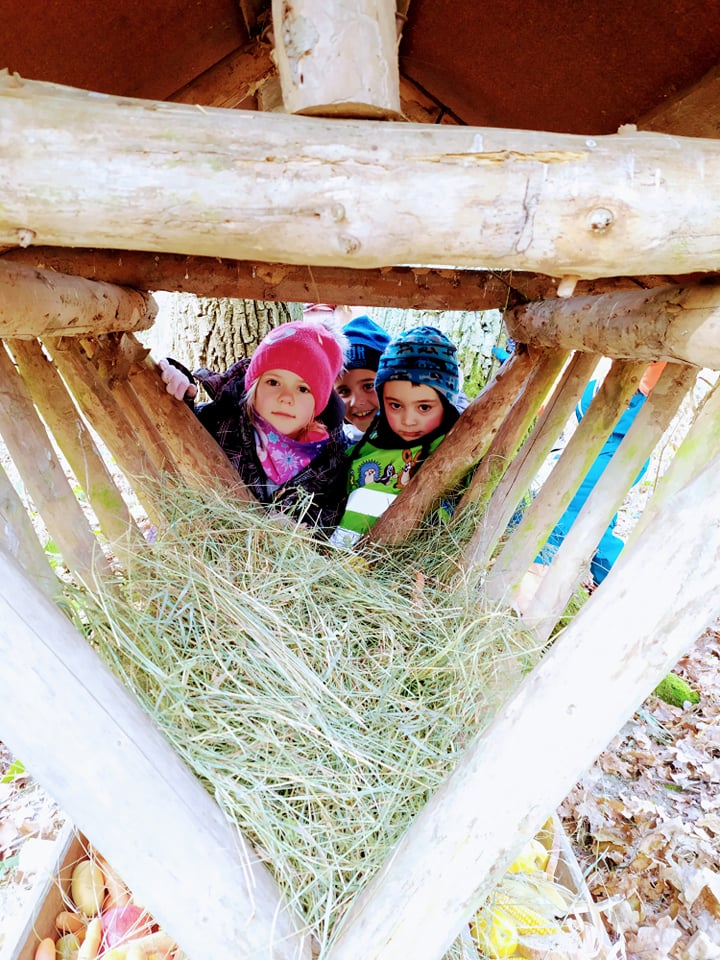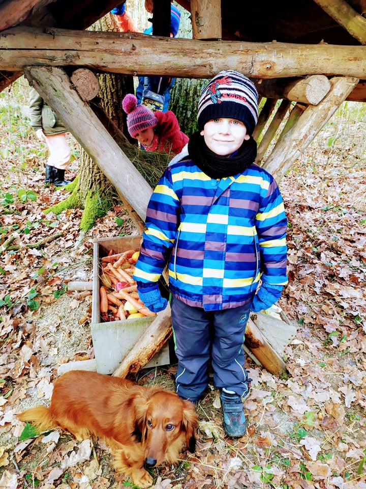 Děti nesly batůžky plné jablíček, mrkve, tvrdého chleba, kukuřice a kaštanů, které založily do krmelce. Doprovod poskytl pan Gustav Hartman, člen místního mysliveckého sdružení Solnice a jeho čtyřnohý kamarád fenka Adélka.