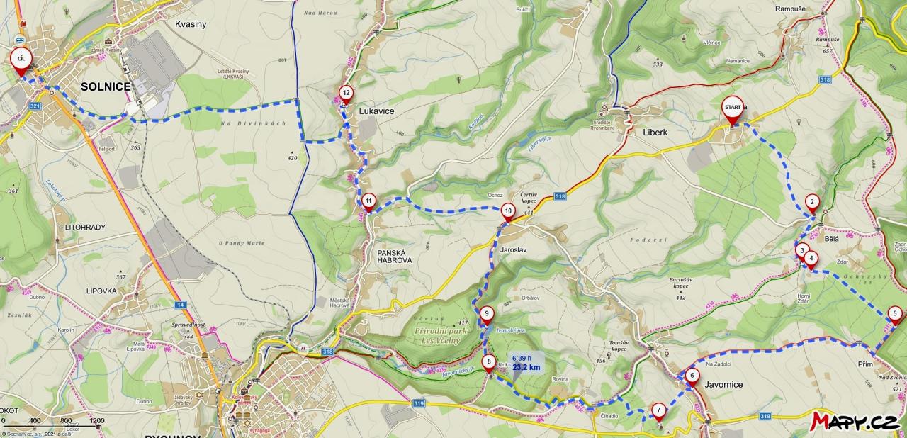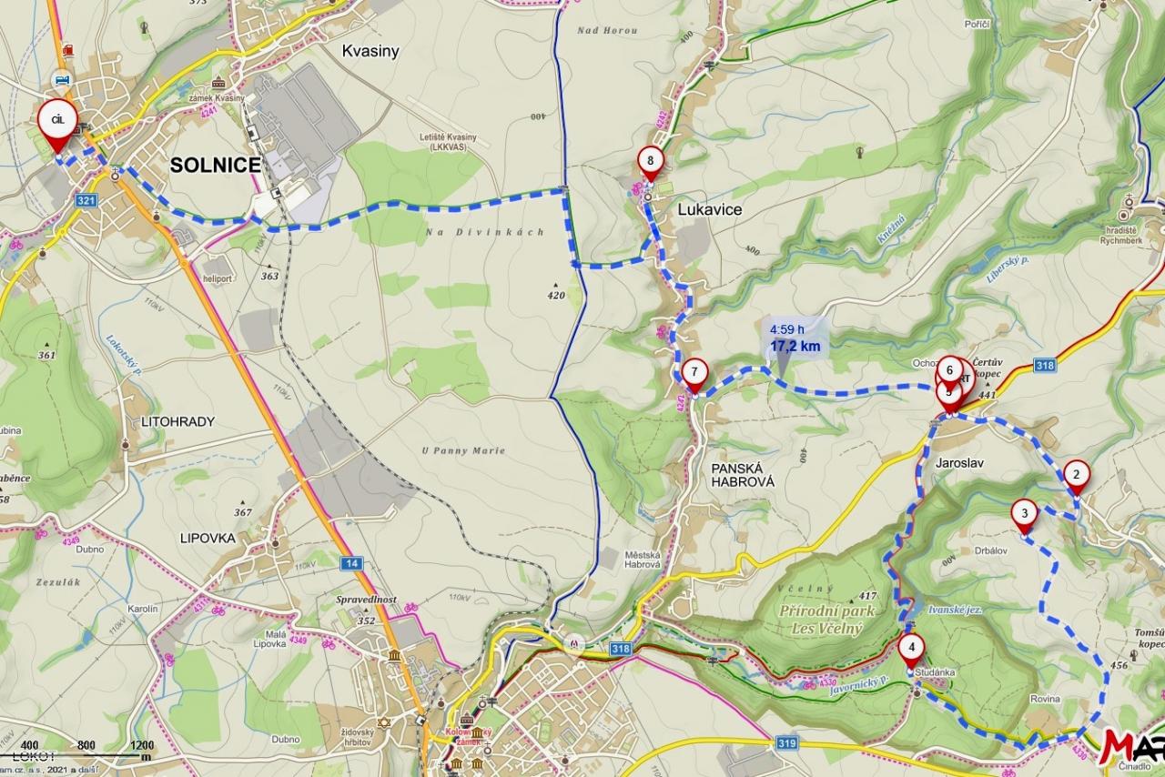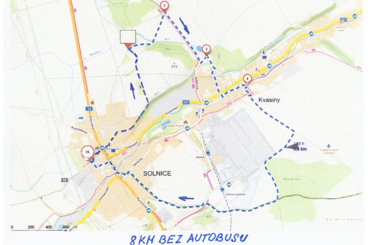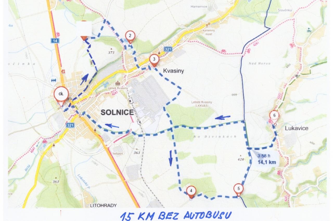 Tři trasy s autobusem - Jaroslav, Hláska, 2 trasy bez autobusu kolem Solnice, Lukavice. Bude upřesněno.
