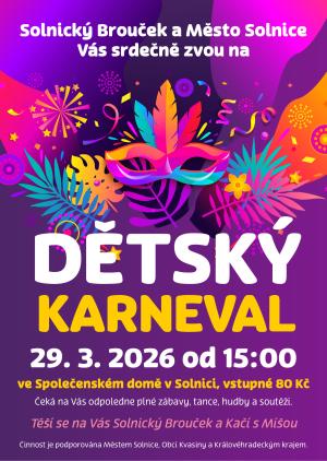 Město Solnice a Solnický Brouček zvou na tradiční Dětský karneval.