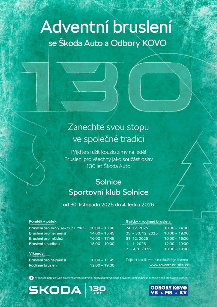 Od 30. listopadu 2025 do 4. ledna 2026 si můžete zdarma zabruslit přímo ve sportovním areálu v Solnici.
