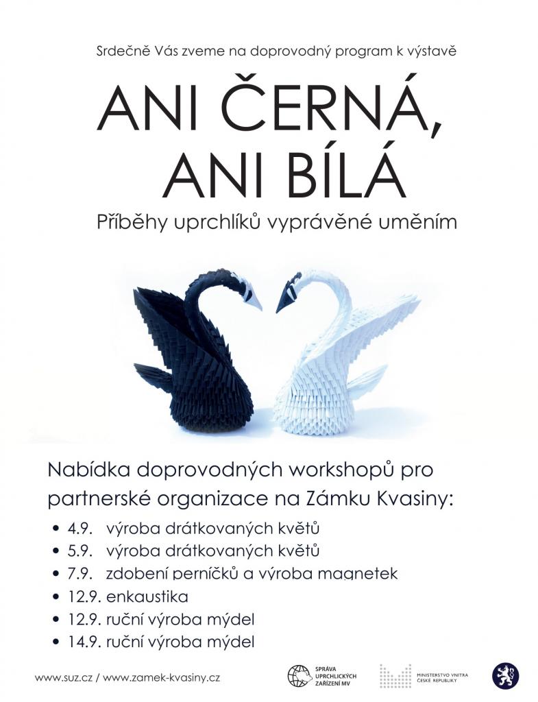 Pozvánka na Zámek Kvasiny na doprovodný program k výstavě Ani černá, ani bílá.