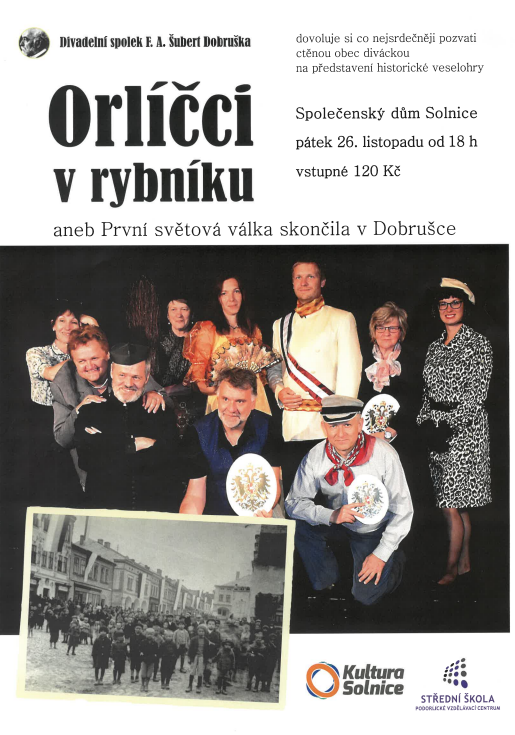 Kultura Solnice s.r.o. zve na divadelní představení dobrušských ochotníků Orlíčci v rybníku.