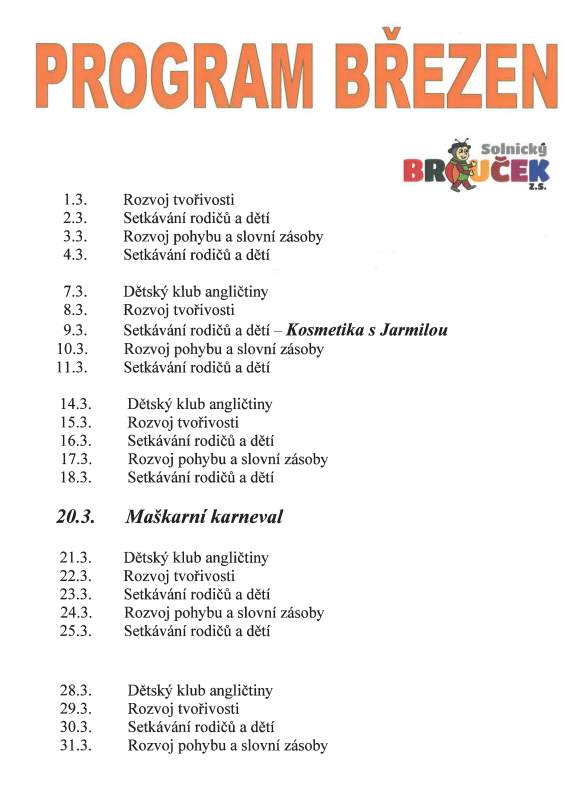 Solnický Brouček - program na březen 2022.