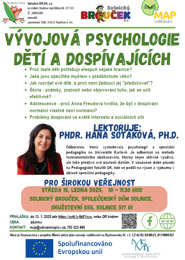 Solnický Brouček zve na besedu s lektorkou PHDR. Hanou Sotákovou, PH.D.