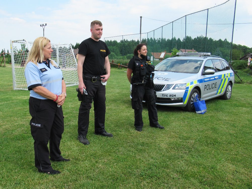 V Ještěticích na hřišti nás očekávala hlídka PČR s mluvčí pí. Kacálkovou.