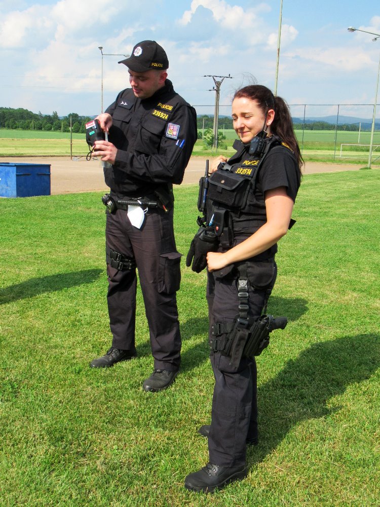 Byla nám předvedena výstroj a výzbroj policistky připravené k zásahu.