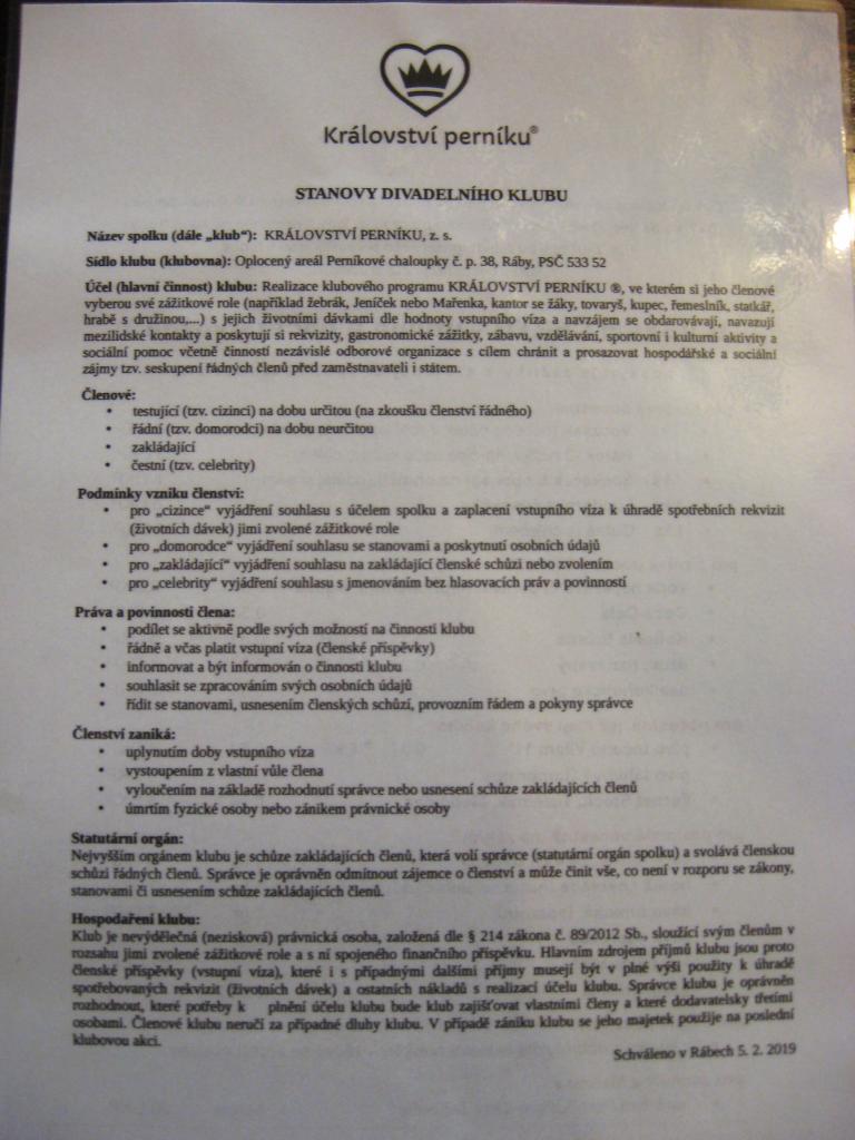 Dobrovolná pravidla a stanovy platná pro návštěvníky a zaměstnance.