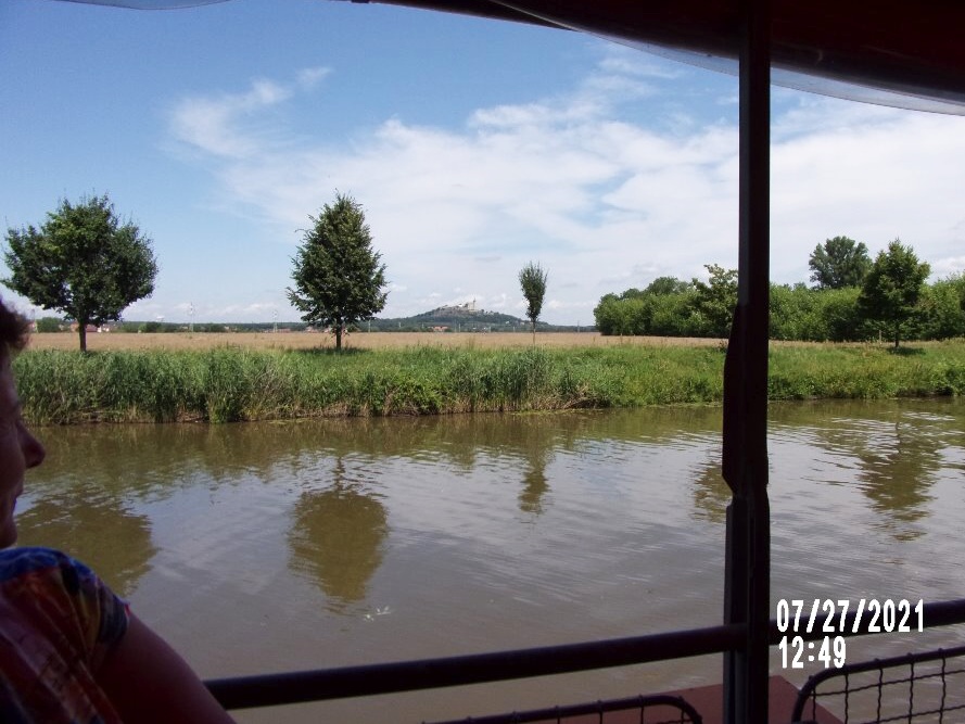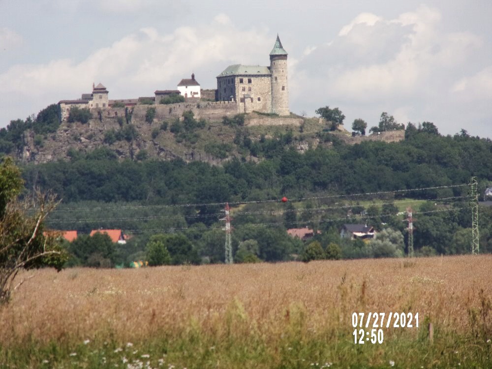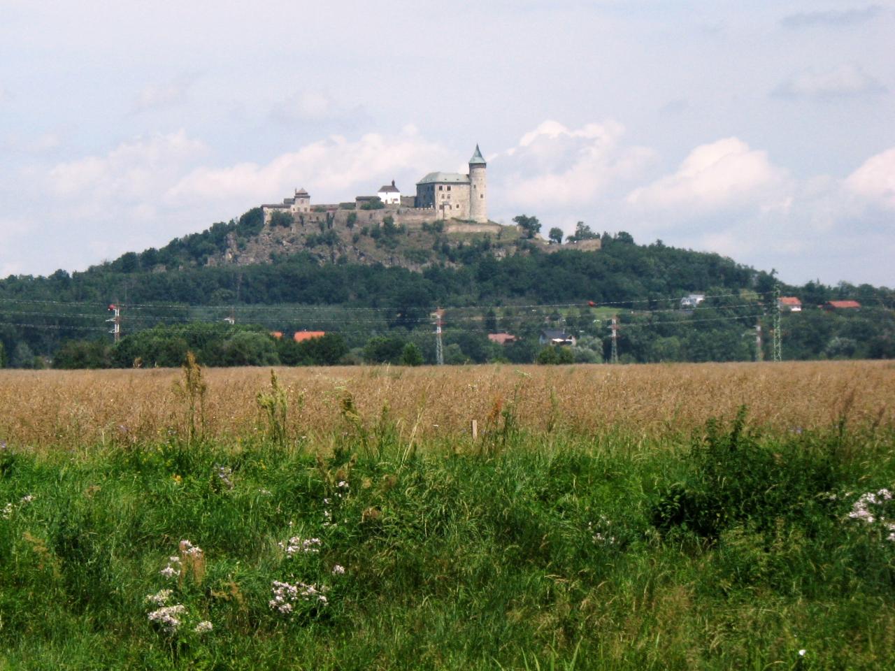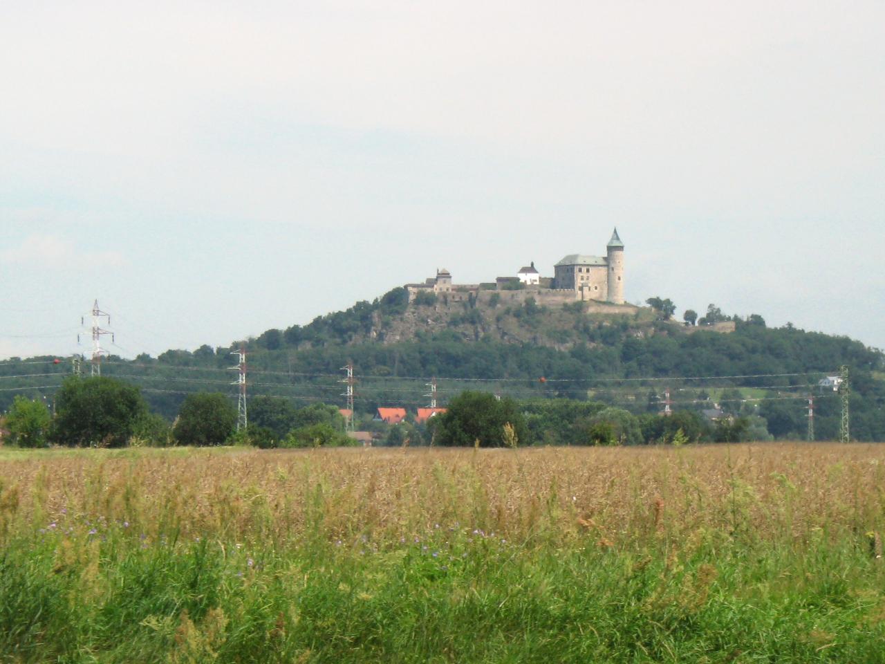 V dáli se nám vynořuje hrad Kunětická hora.