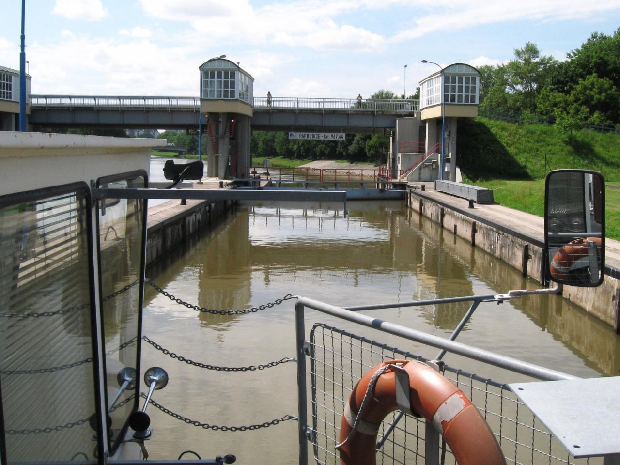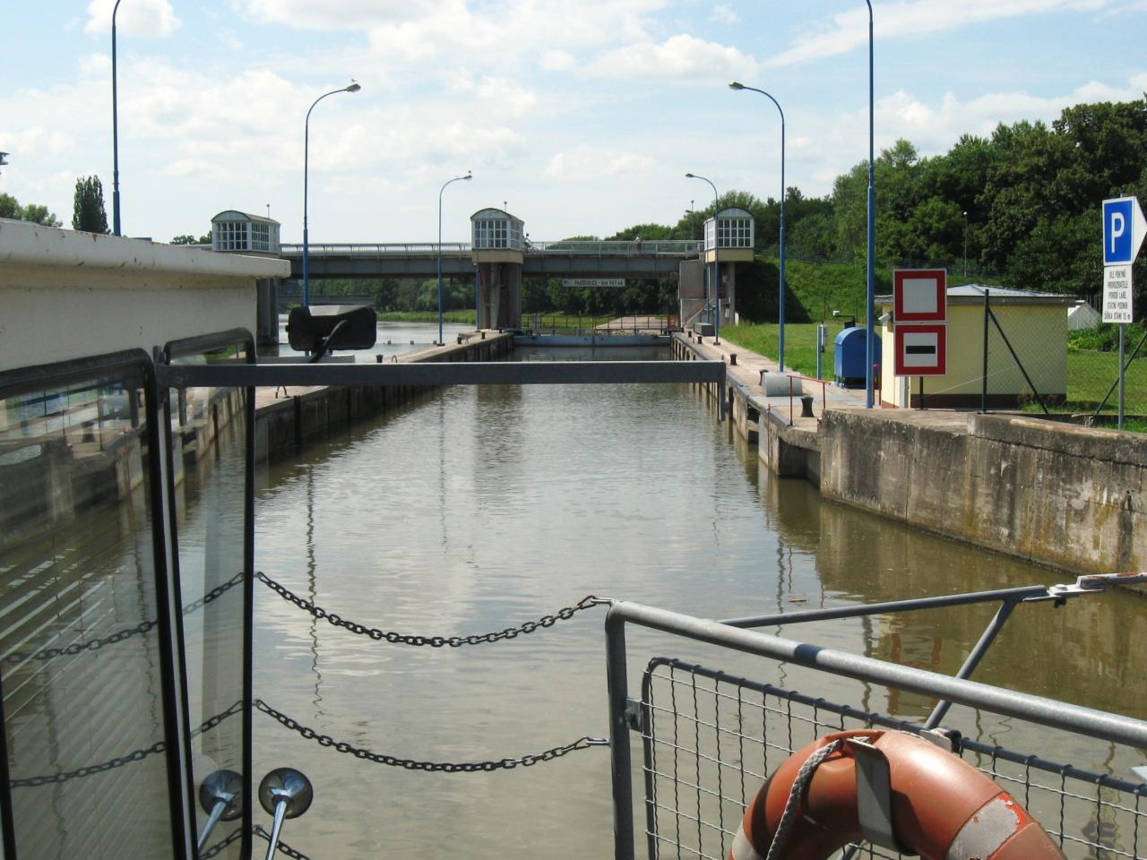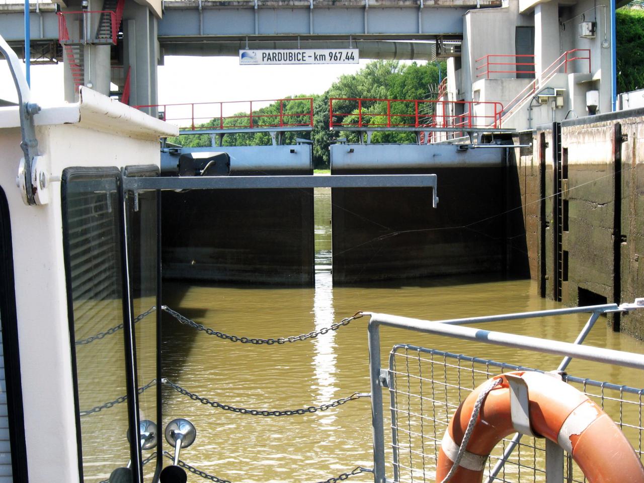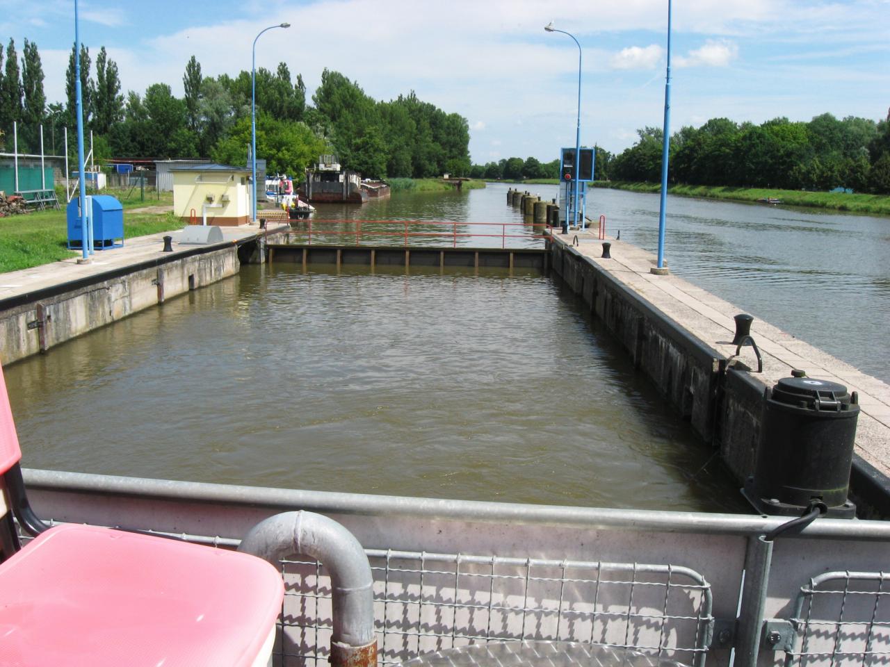 Najíždíme do plavební komory.