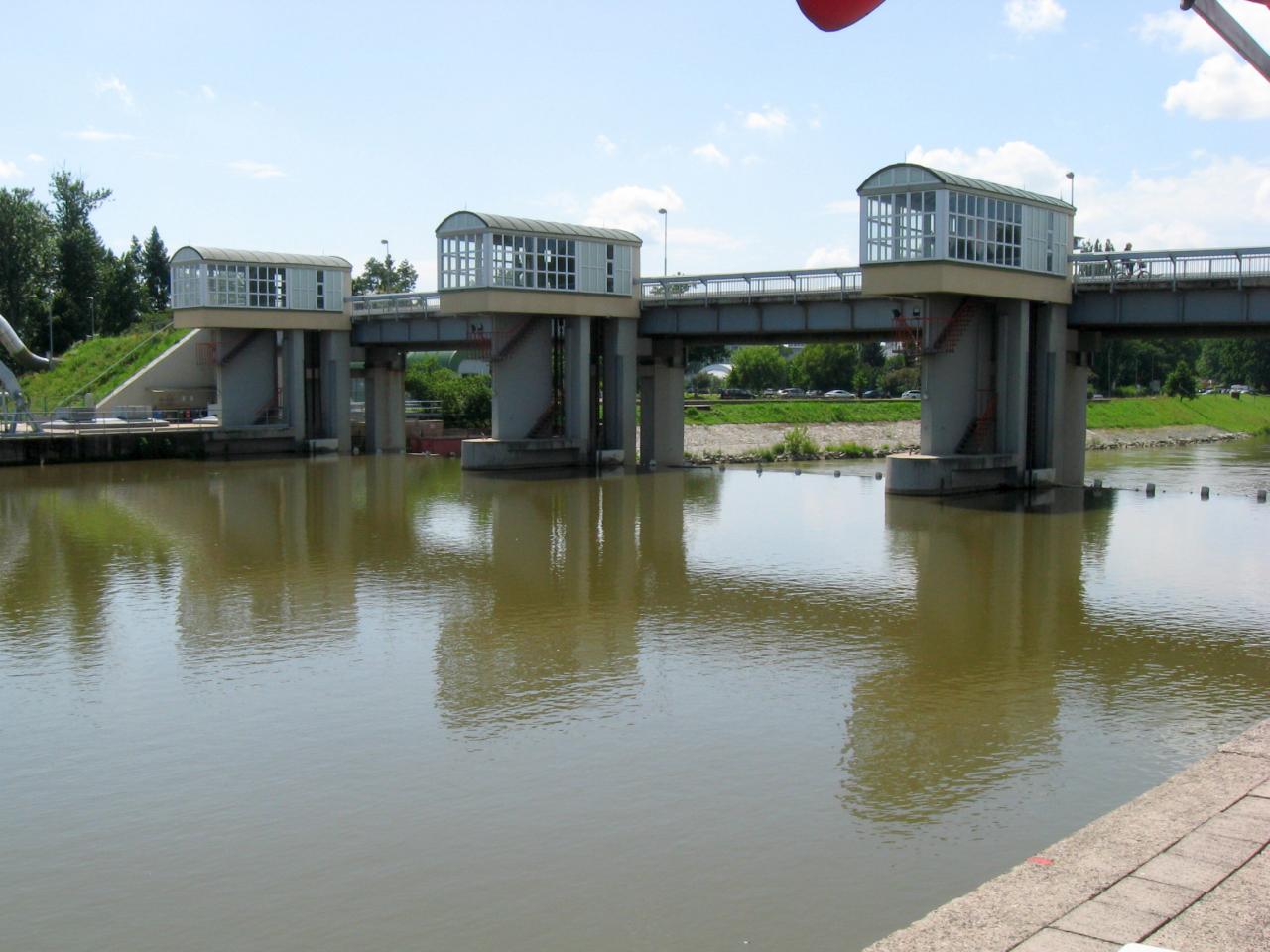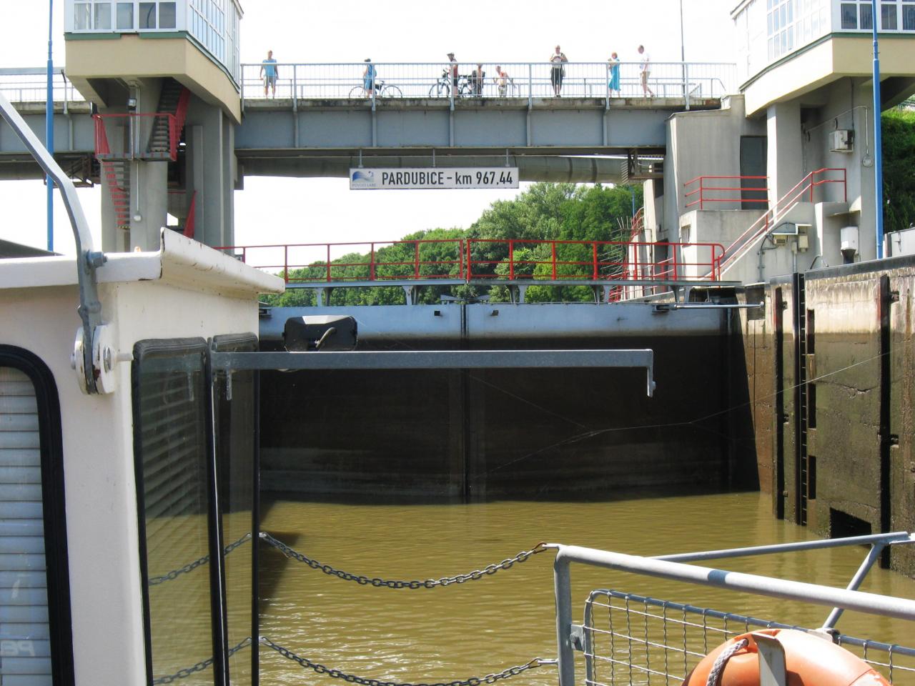 Oblíbená podívaná pěších a cyklistů ze zdymadlové lávky.
