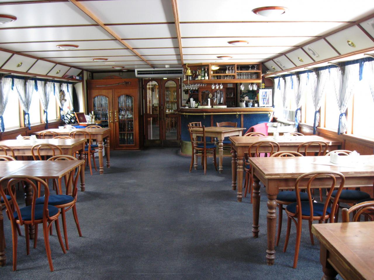 Jídelna na dolní palubě lodi.