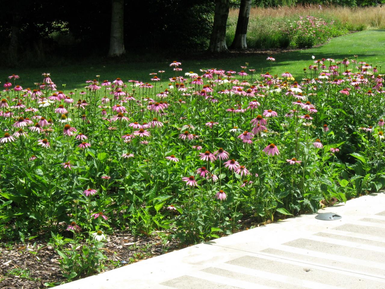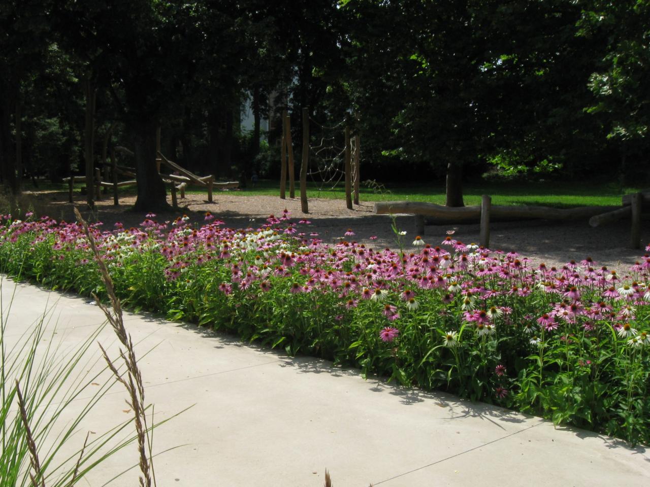 ...kolem záhonů s květinami...