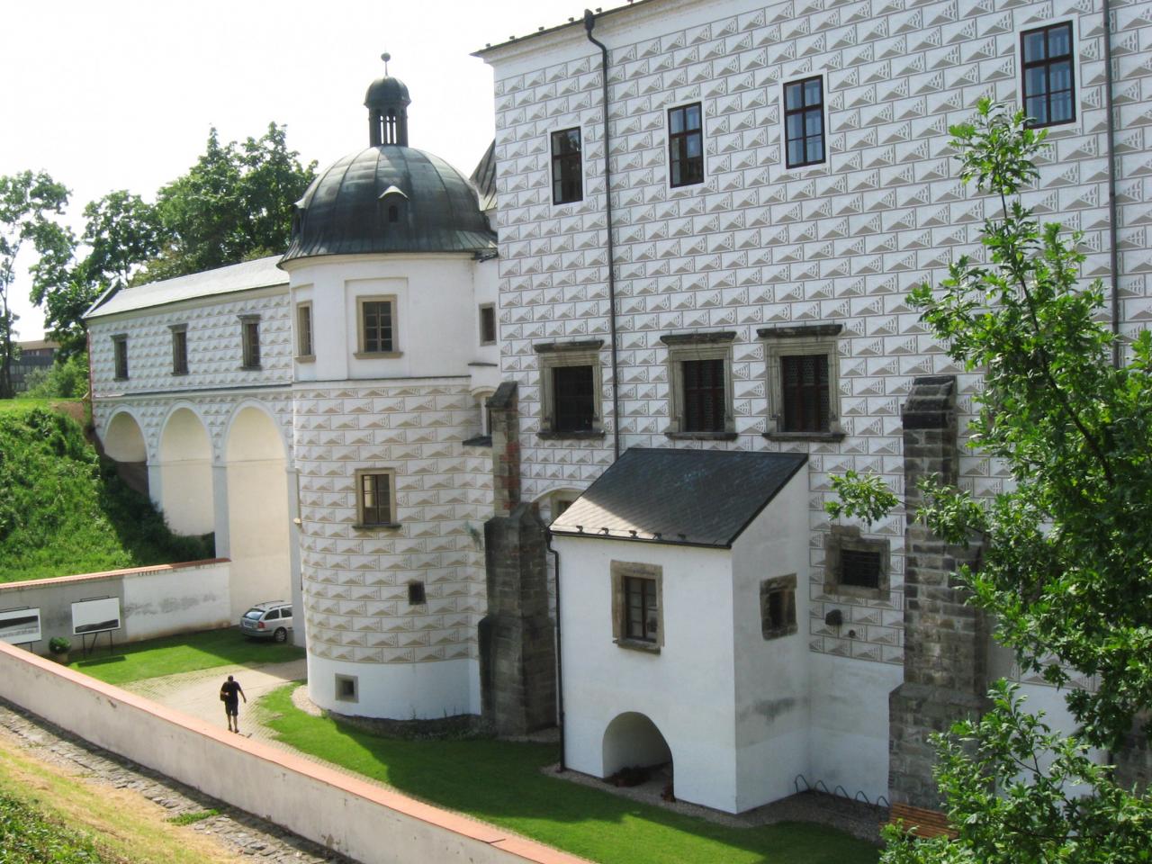 Zadní trakt "Příhradku" východně od zámku.