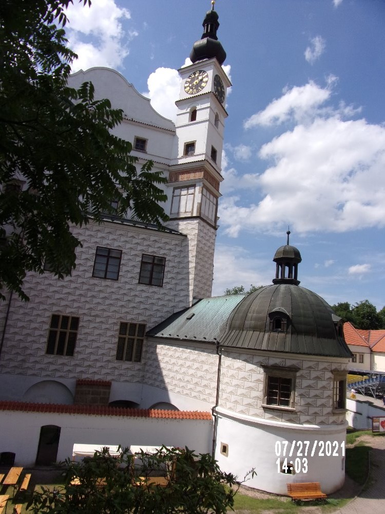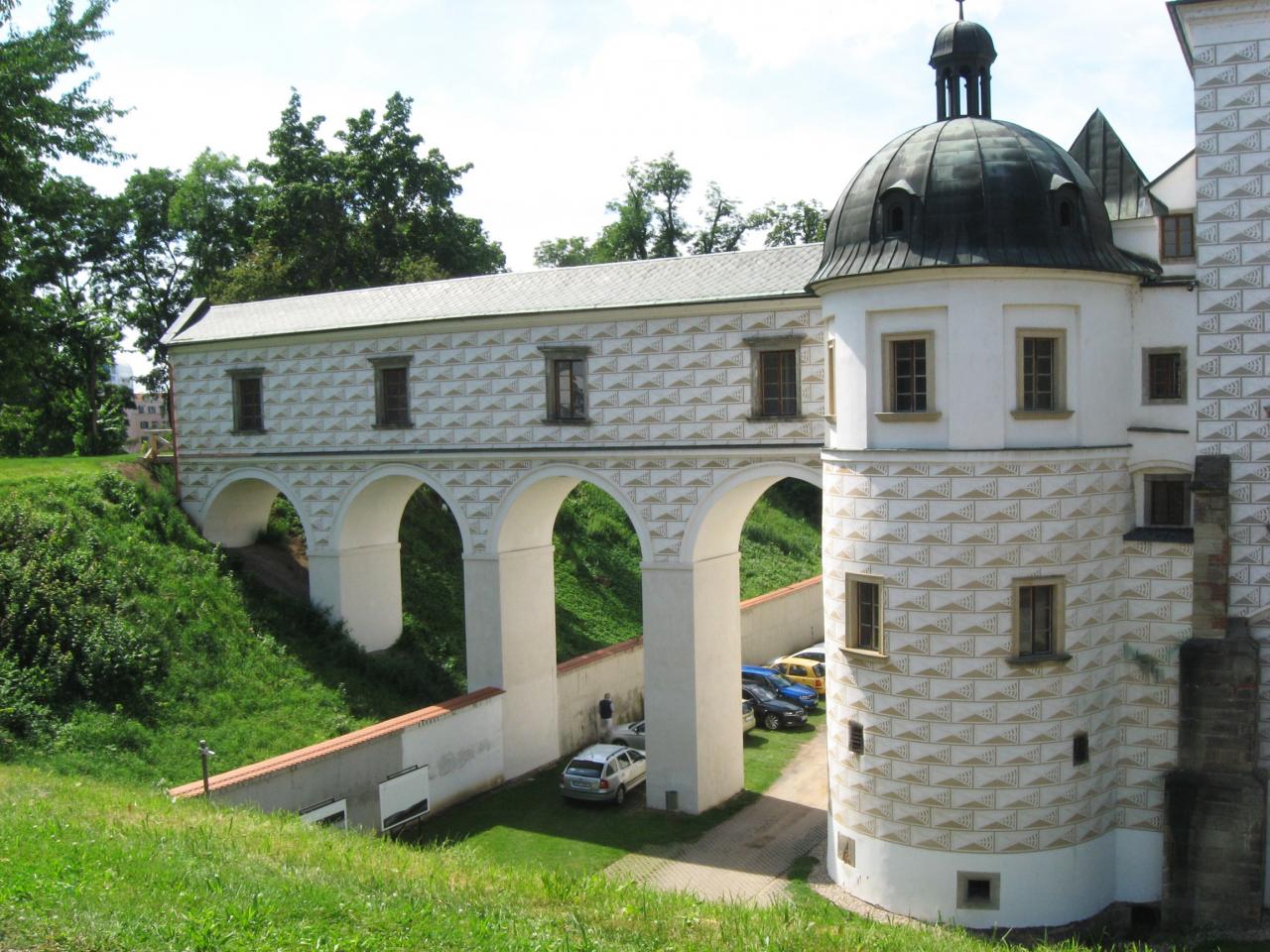 Věž pardubického zámku s věžicí.
