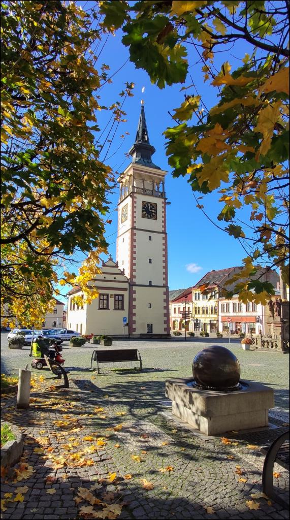 Dále jsme pokračovali do Radniční budovy vyhlídkové věže z 16. století. Zde se nachází expozice hrdelní právo Města Dobrušky, obdivovali jsme vystavené obrazy Františka Kupky i tvorbu Aloise Beera. Z vyhlídkového ochozu jsme využili možnost spatřit celé město, které zdobil výhled i na Orlické hory a Podorlicko. Měli jsme velké štěstí, protože vše bylo zalito podzimním sluncem, takže výhledy byly přenádherné.