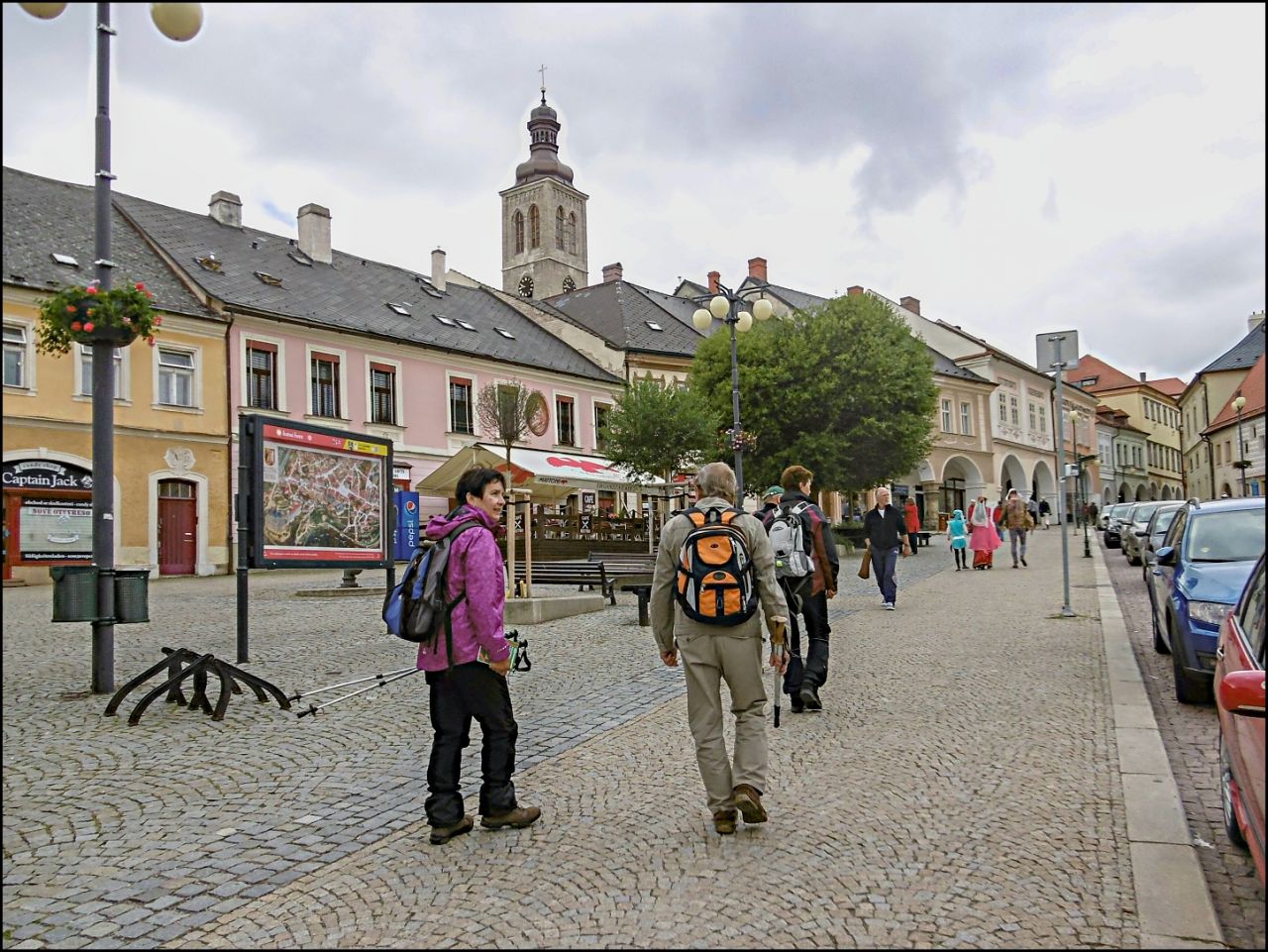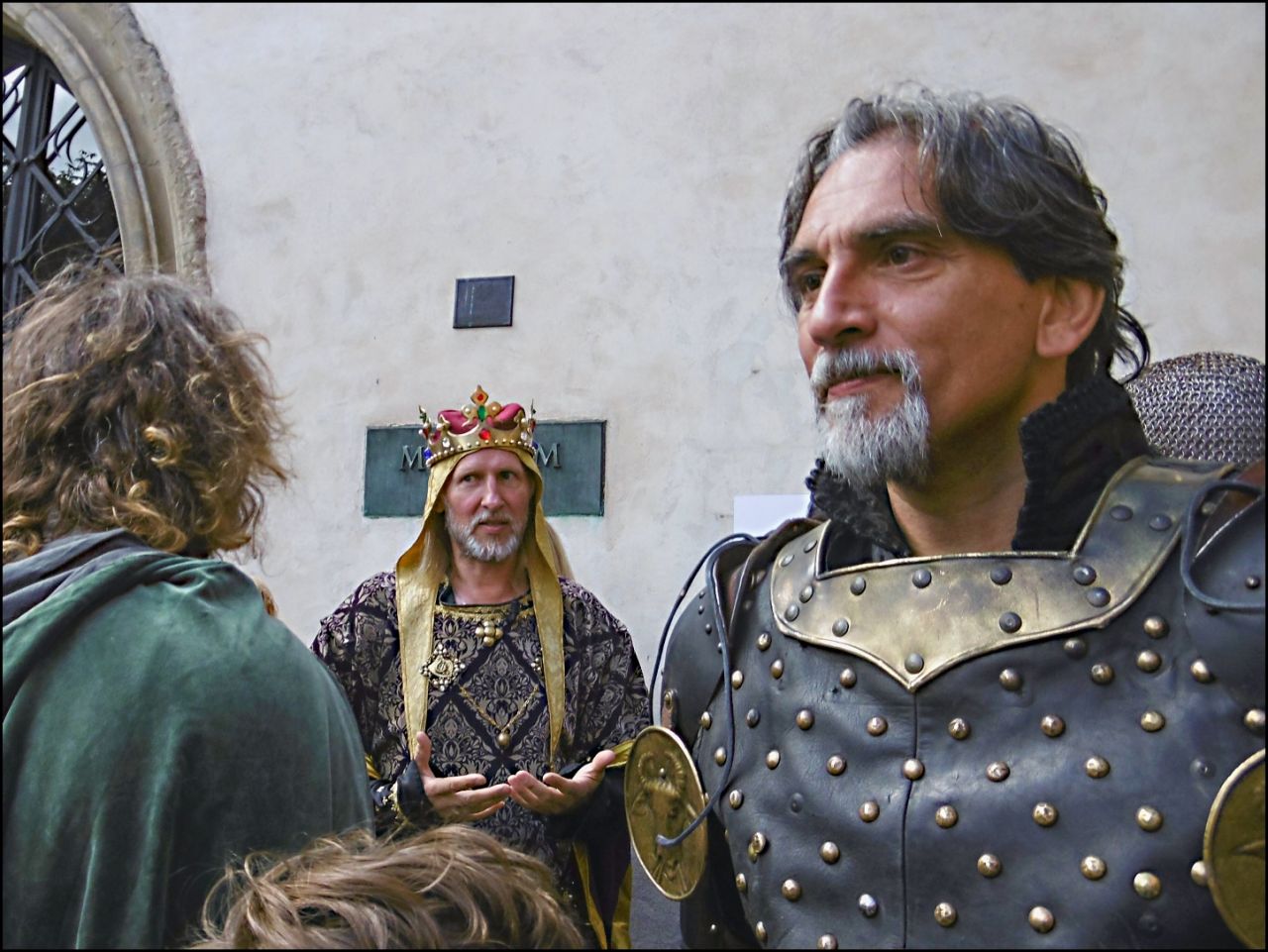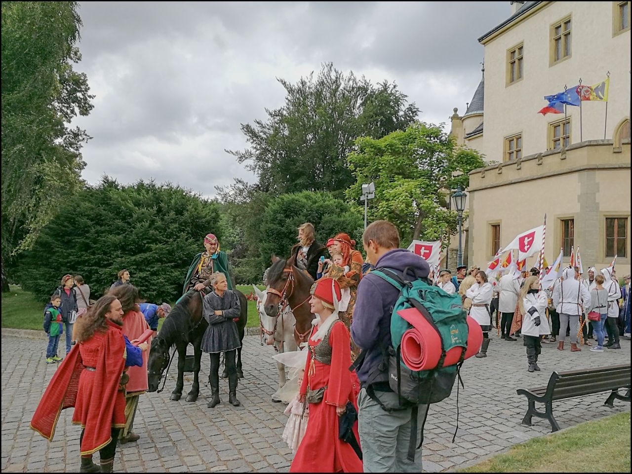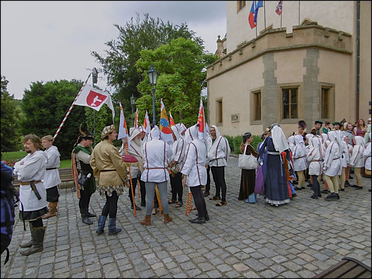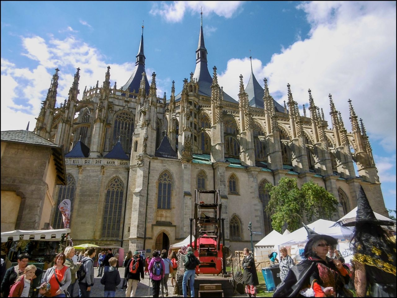 Parkujeme u nádraží a hned na náměstí zjišťujeme, že v Kutné Hoře je „Stříbrobraní“ s průvodem. Fotíme průvod, jezdce na koních ve středověkých oděvech, havíře v oděvech 14.století, dívky s čepci, další na chůdách. Připojujeme se k průvodu.