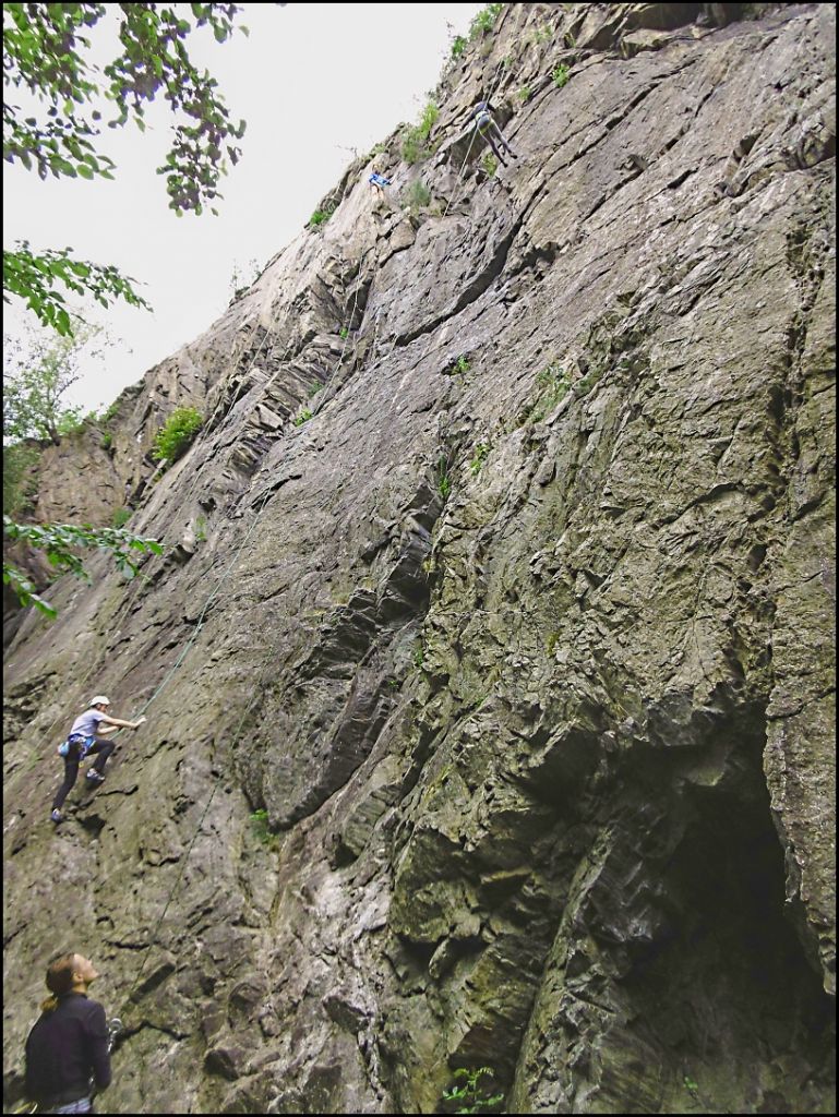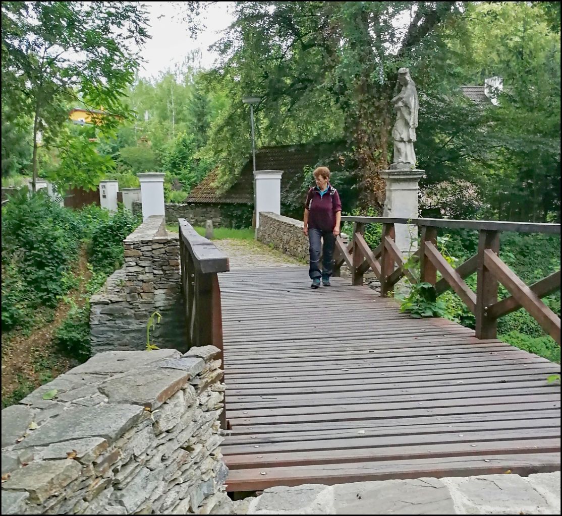 Konečně se stezka mění v pěšinu kolem Vrchlice. Cestou mlýny, některé jako zříceniny, jiné přeměněné v luxusní penziony. Občas i tábořiště se stany, skákadly a bazény pro děti. Nad posledním mlýnem začíná ta nejkrásnější část, skály, strmé stěny, bíle svítící, náhon na mlýny, je dokonce teplo, svítí slunce.