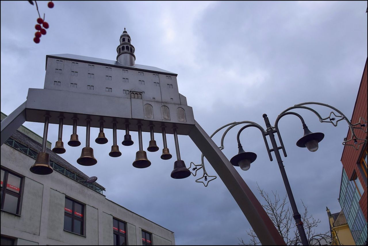 Pokračujeme po pěší zóně na Karlovo náměstí. Upoutá nás zvonkohra, která byla zprovozněna na vánoce 2016. Zvonky se rozezní každou celou hodinu a zahrají i motiv známé písně. Motivy písní se střídají, každou hodinu je jiný. Pokračujeme po pěší zóně na Masarykovo náměstí, zastavujeme se u lavičky Josefa Škvoreckého.