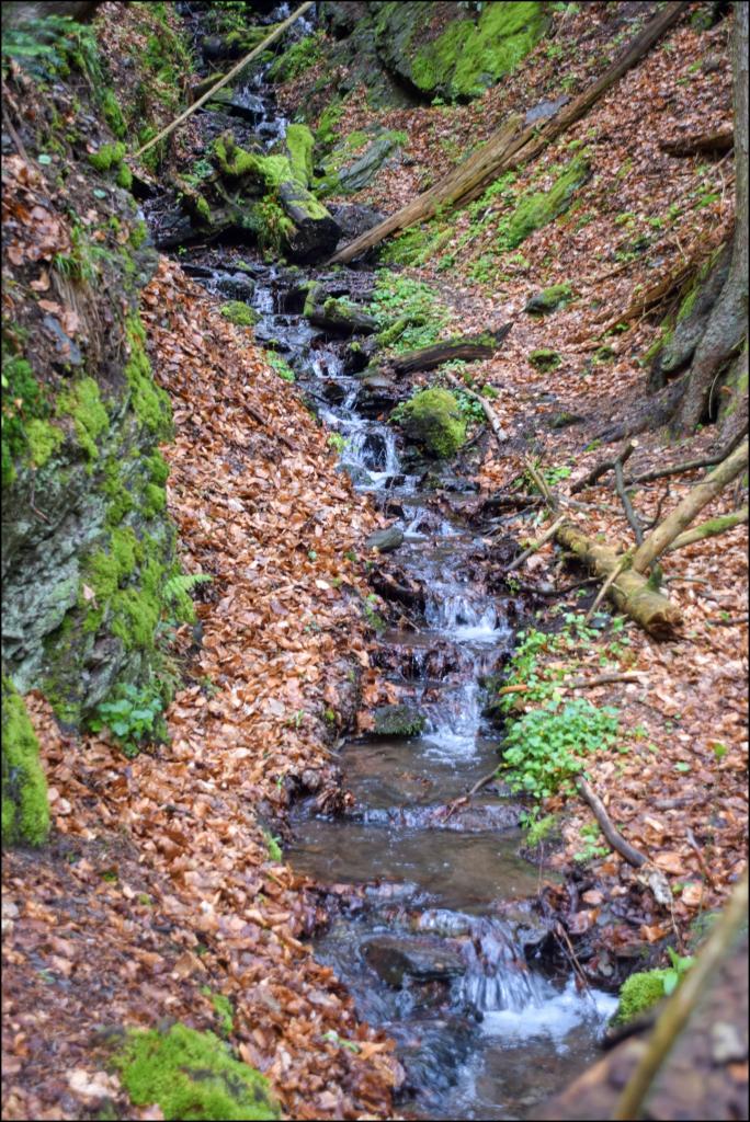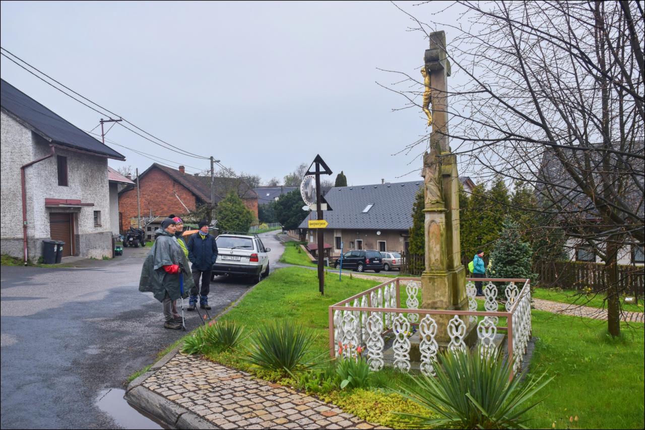 Přicházíme do Přibyslavi. Vesnička nás mile překvapuje příjemným prostředím, pěknou úpravou a čistotou. Vyhlášená hospoda na návsi je zavřená. Za vesnicí odbočujeme a jdeme prudkým klesáním kratší cestou přímo do Pekla. Původně plánovaná trasa přes Koníček je s ohledem na vlhké počasí nebezpečná.
