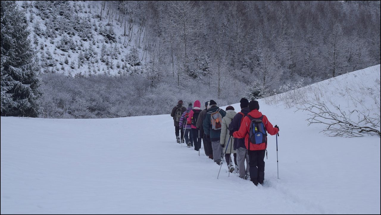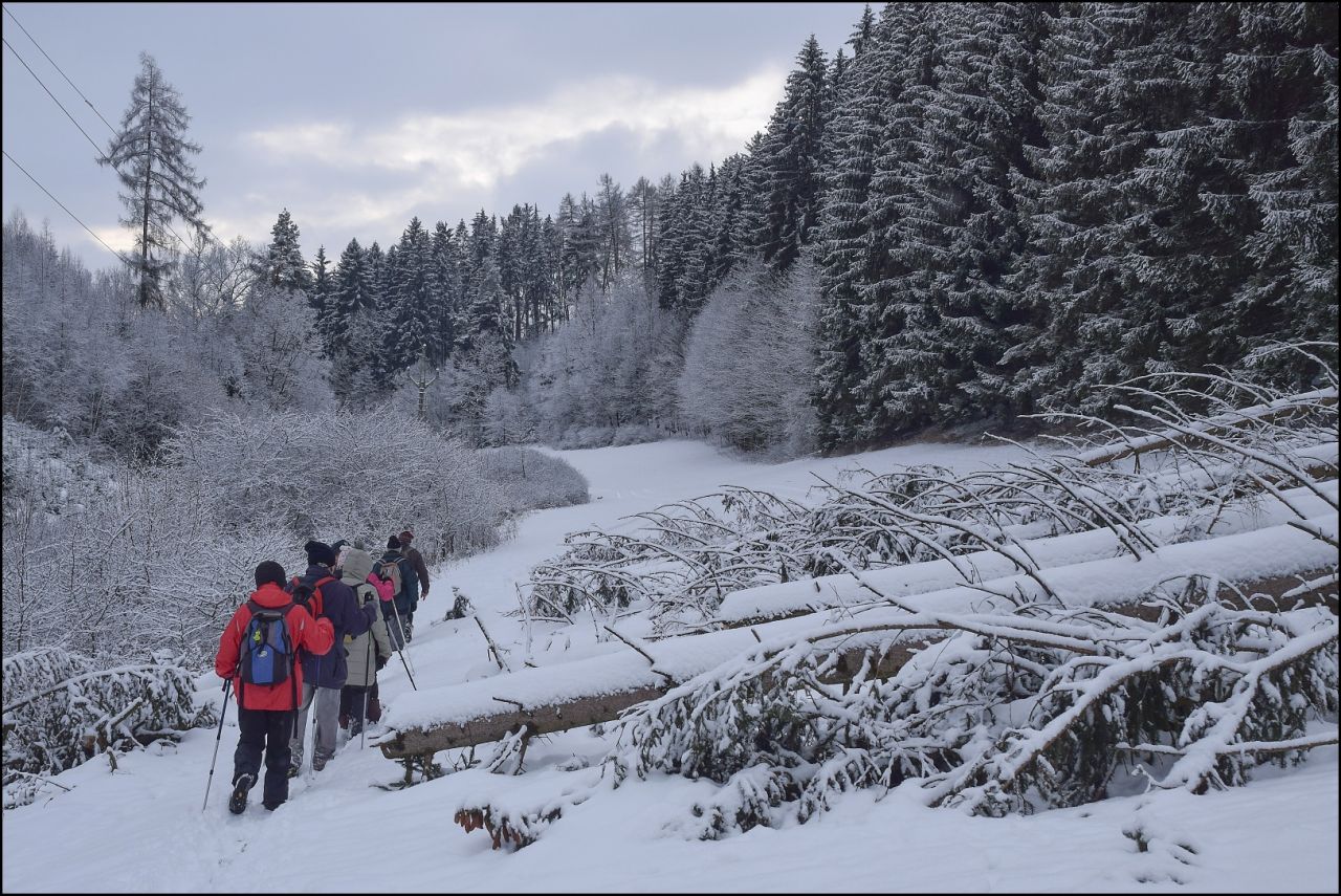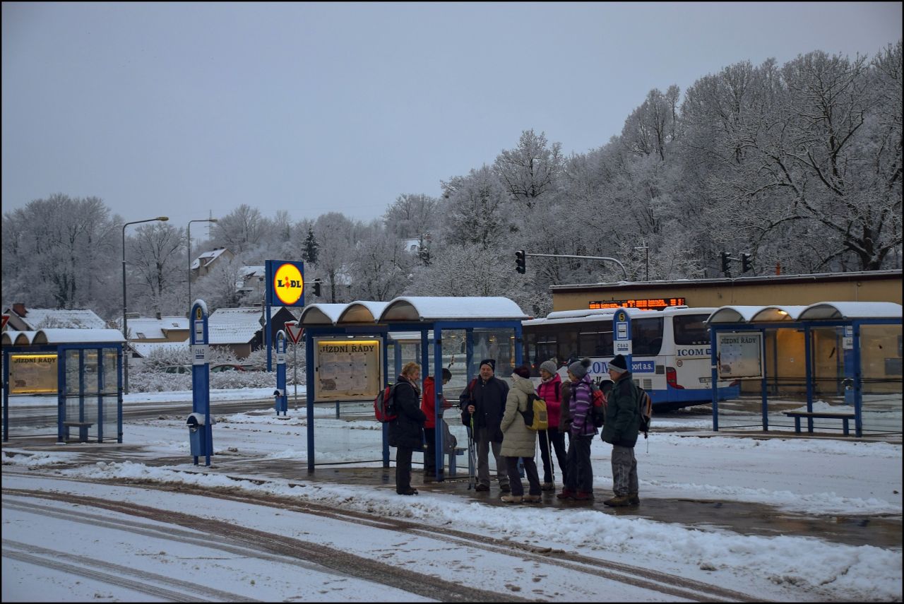 Vyjíždíme v 7.40 autobusem do Rychnova n. Kn. a hned přesedáme na autobus směřující do Rokytnice v Orl. h. Je typický zimní den, všude hodně sněhu, chumelí. Jedeme do obce Kameničná.