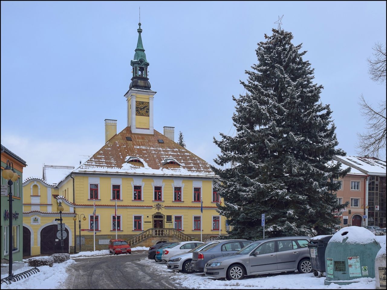 Stoupáme ještě dva kilometry na náměstí do výborné restaurace. Oběd, pivo a pokračujeme do zámeckého parku.