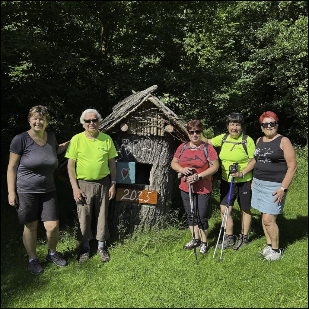 Družstvo „A“ v počtu šesti turistů vyrazilo z kavárny v Novém Městě nad Metují vzhůru po zelené TZ k Husově lípě, dále pěknou stezkou ve stínu stromů Lybchiňským údolím, přes Pavlátovu louku do Lybchině, kde na kraji vesnice krásné odpočinkové sezení zlákalo k malé svačince a k oddechu v již velmi teplém počasí. Posilněni a odpočatí jsme sešli do obce ke kapli, kde bylo první společné focení družstva „A“.