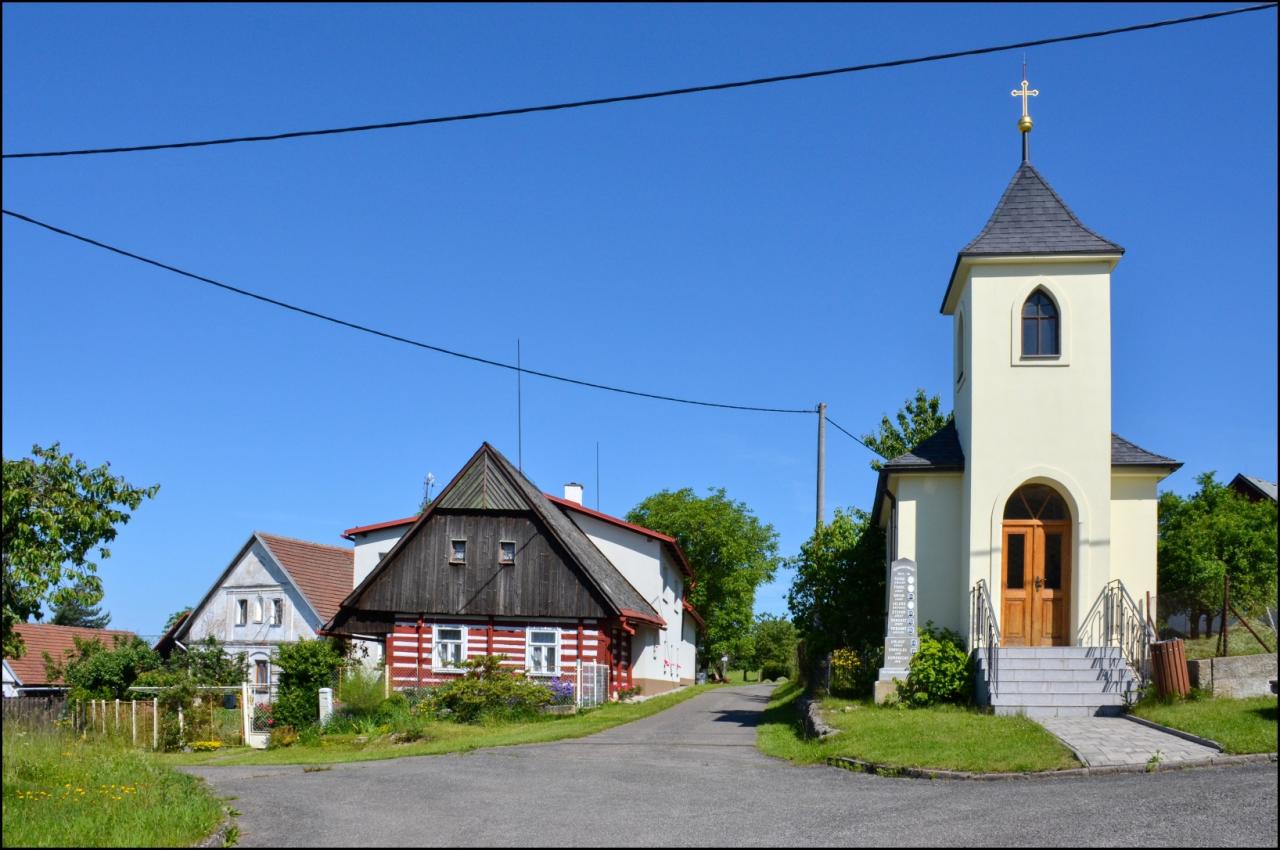 Za obcí jsme pokračovali po zelené TZ opět pěknou stíněnou stezkou až k obci Sendraž, na návsi další focení u kaple. A tu už na nás čekal vedoucí družstva „B“ a společně jsme zamířili do místní hospůdky u Svatého Floriána, kde nás překvapili skvělou a rychlou obsluhou a pestrou nabídkou jídel a nápojů.