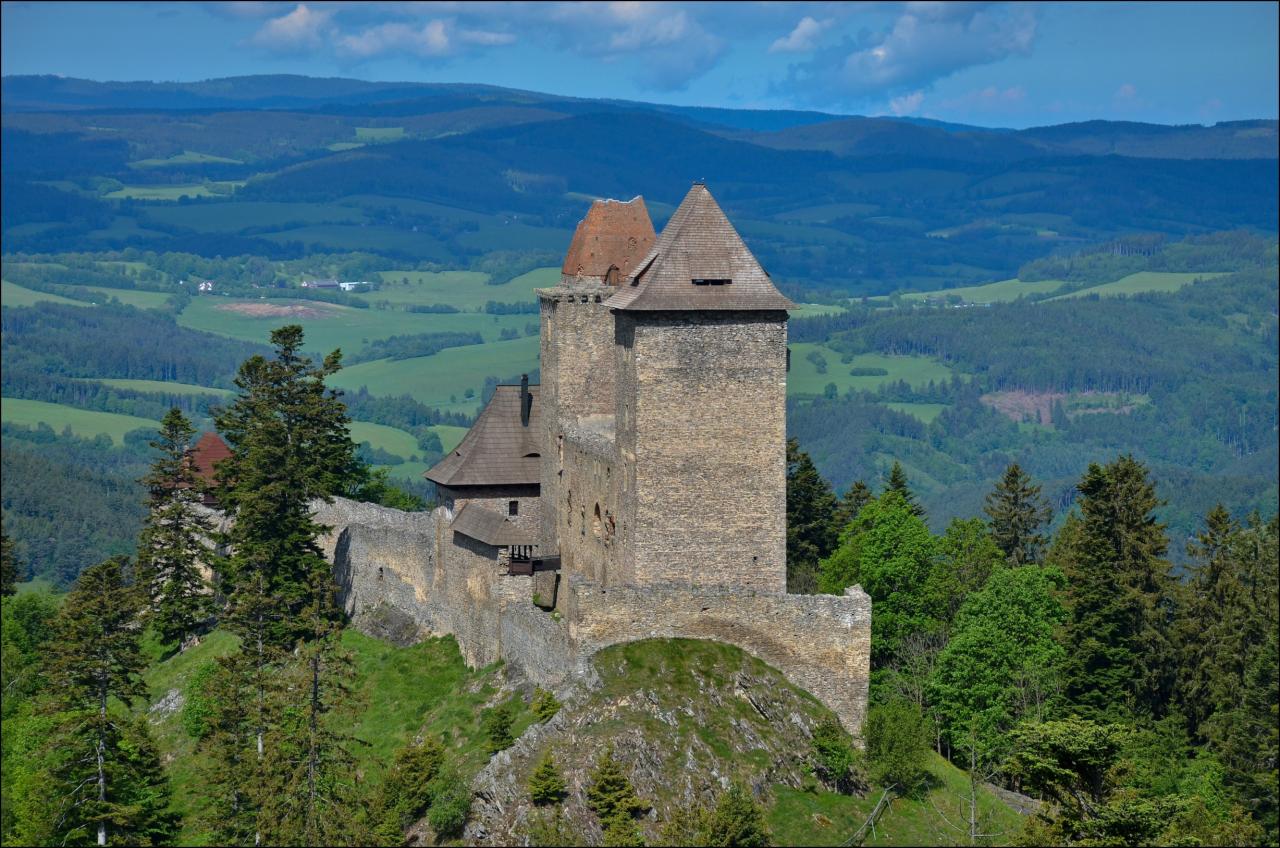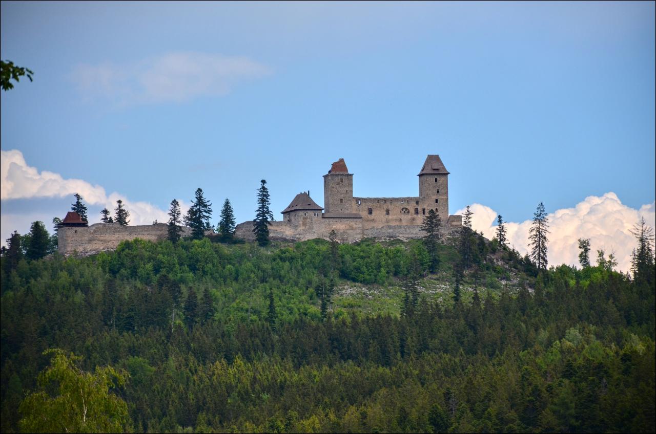 V pondělí po snídani a sbalení si zavazadel odjíždí autobus s účastníky na parkoviště Žlíbek nad Kašperskými Horami. Odtud prudce stoupáme po zelené na Pustý Hrádek, což je předsunutá bašta hradu Kašperk, která se nachází v nadmořské výšce 924 m n. m., tedy o 38 m výš než vlastní Kašperk.